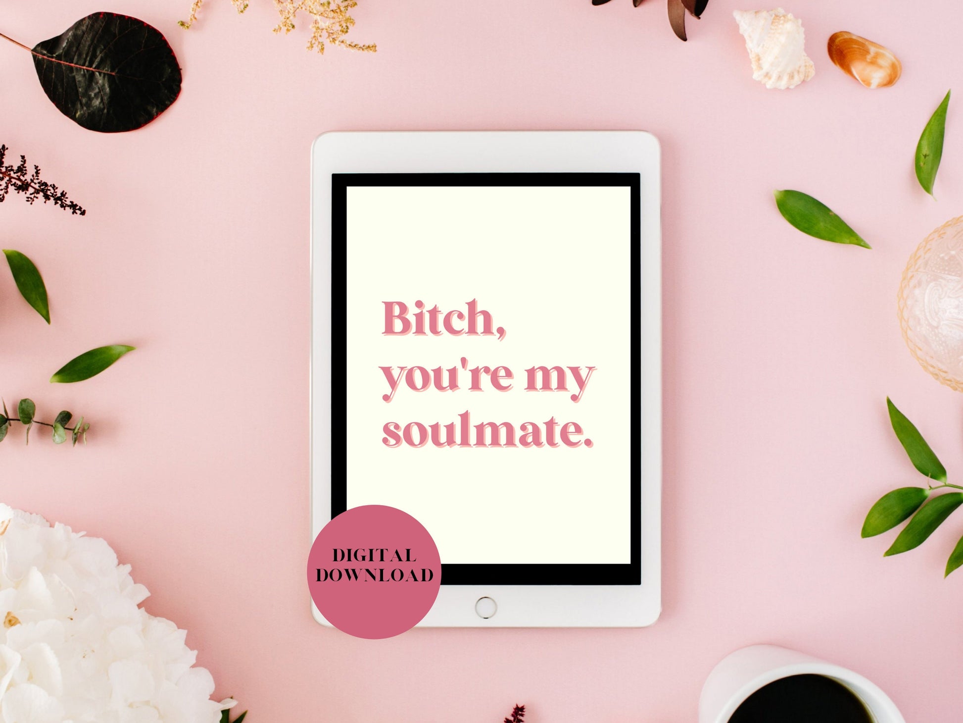 ♡An adorable addition to your place! 'B*tch, you're my soulmate' digital quote print is perfect for displaying in your living room, bedroom, office space, or anywhere you want to add a pop of color and personality!