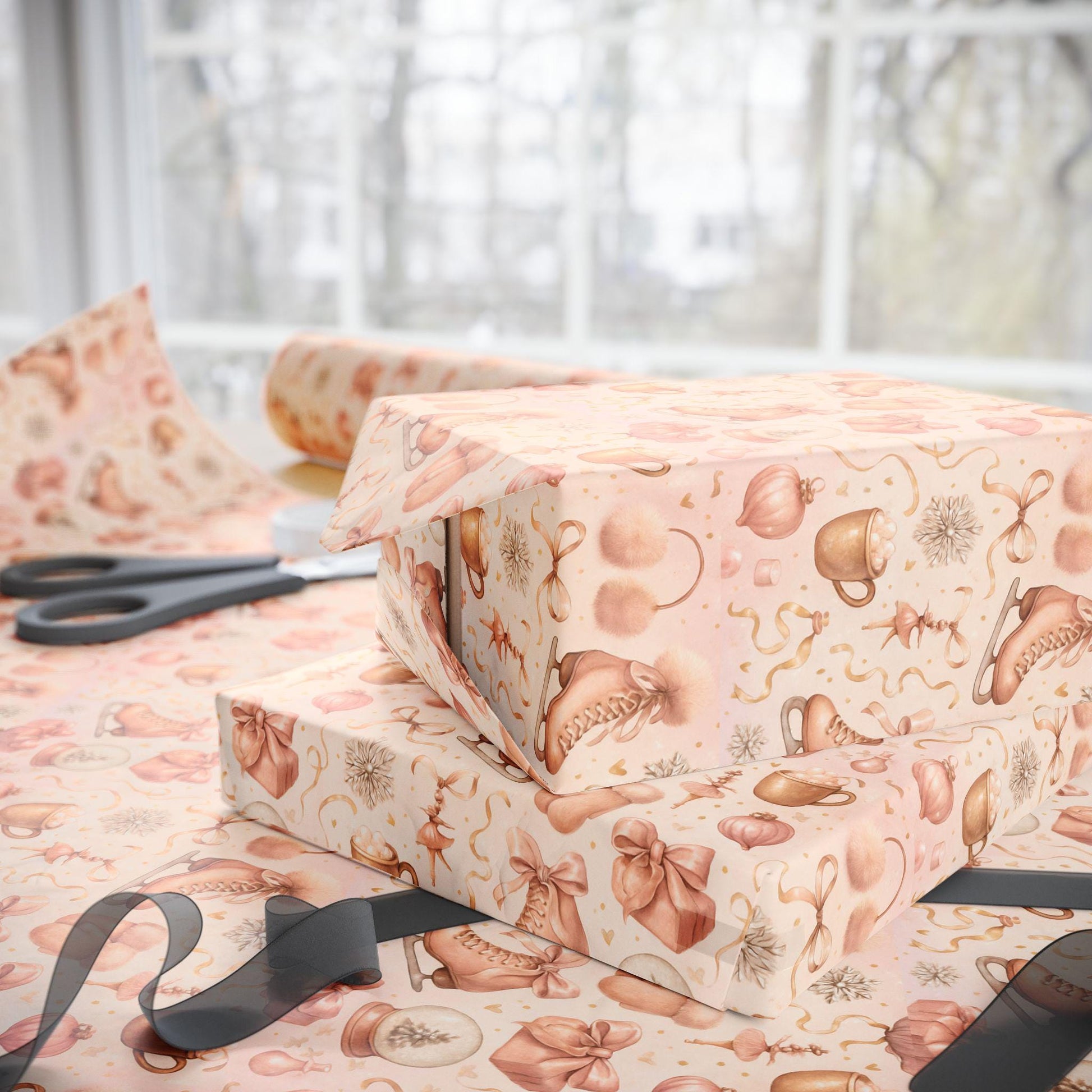 Luxury Christmas Wrapping Paper, Pink Ice Skater Fantasy Design, Anthropologie Style, Papyrus Inspired, Elegant Holiday Gift Wrap, Whimsical